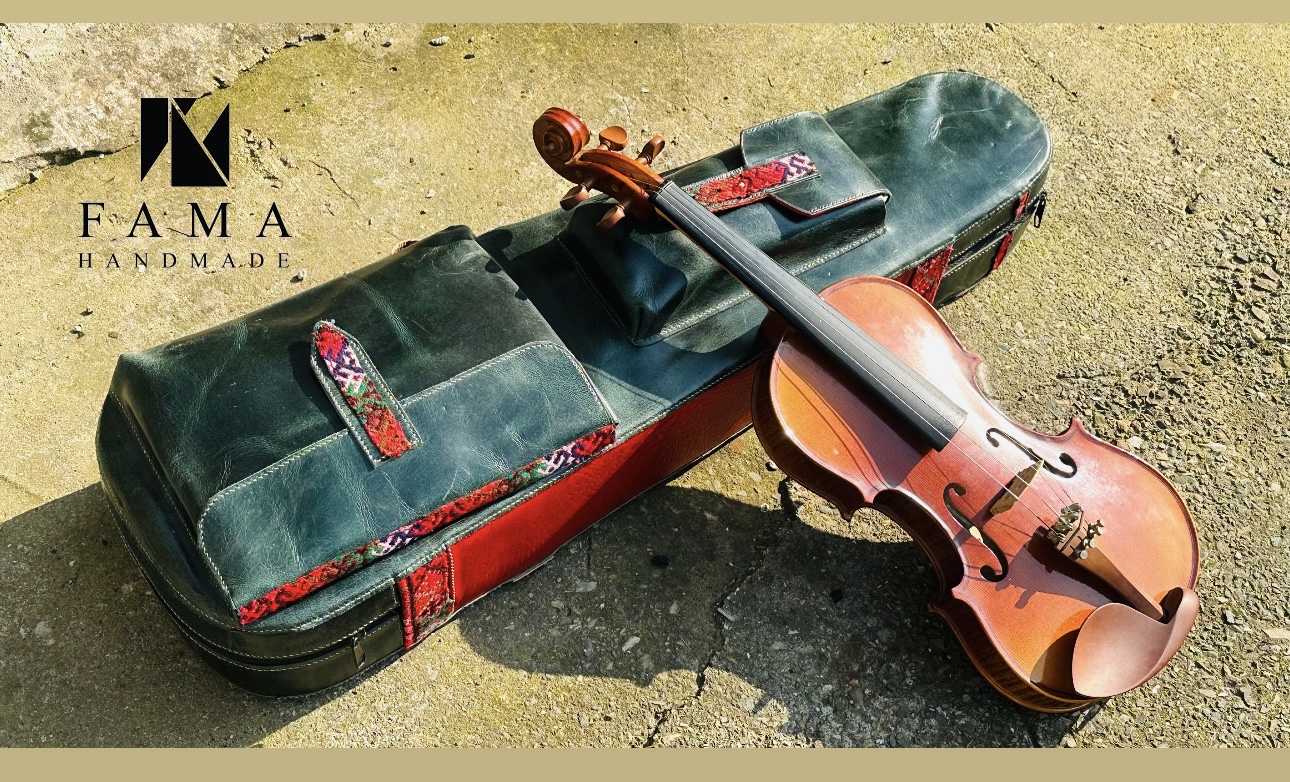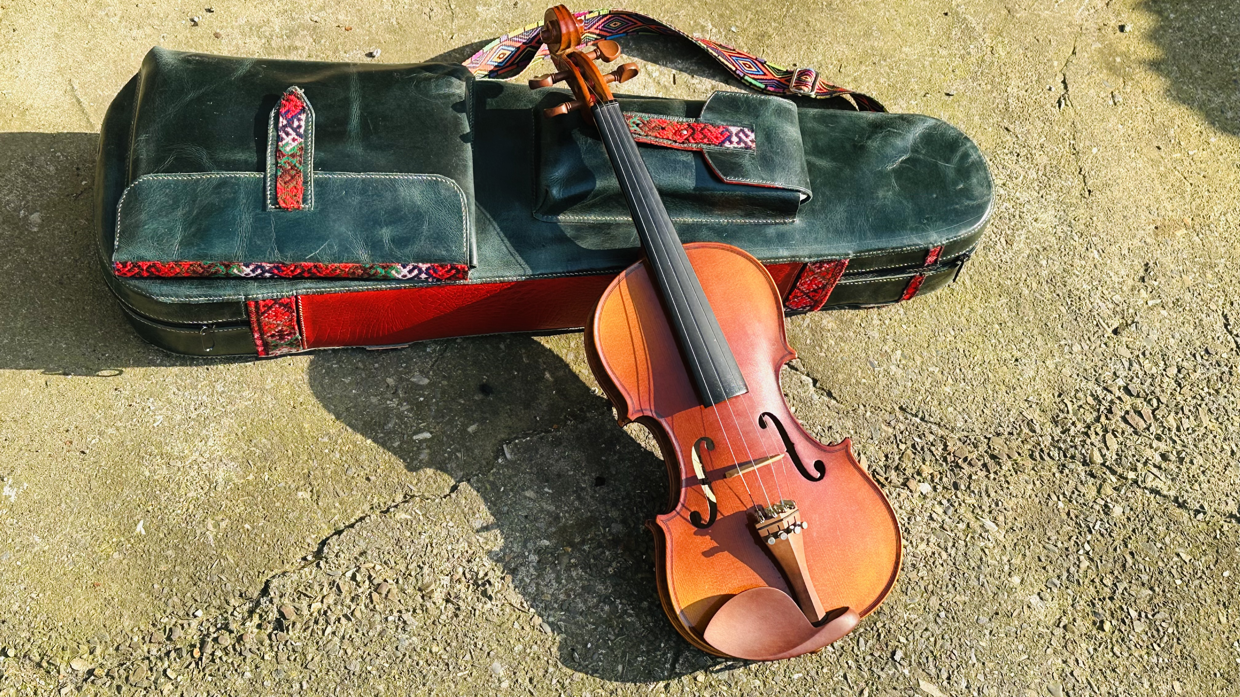 ویولن زدن در طبیعت بهمراه کیس ساز ویلن تلفیقی از چرم و پارچه سوزن دوزی