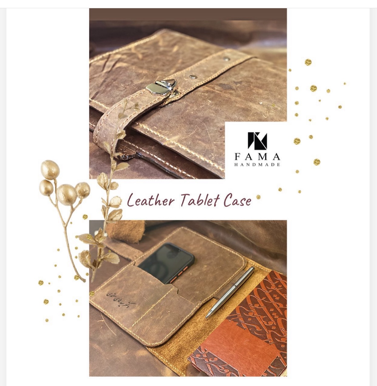 این کیف طوری طراحی شدهاست که فضای مناسب برای قرار گرفتن دفتر-تبلت-موبایل -جای کارت و روان نویس می باشد.