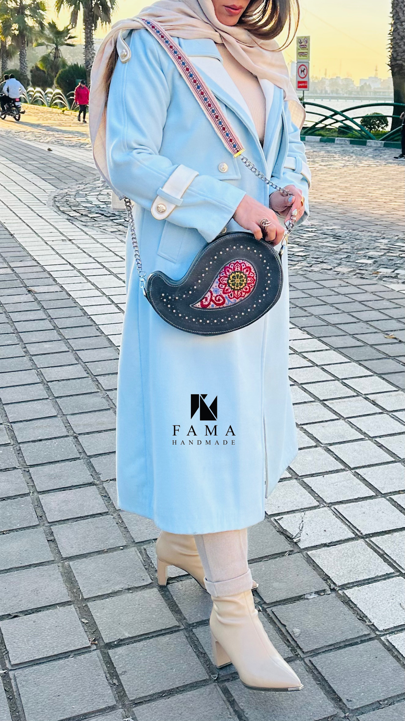 کیف دست دوز طرح بته جقه شماره دوزی شده که فقط یک عدد از آن ساخته شده است